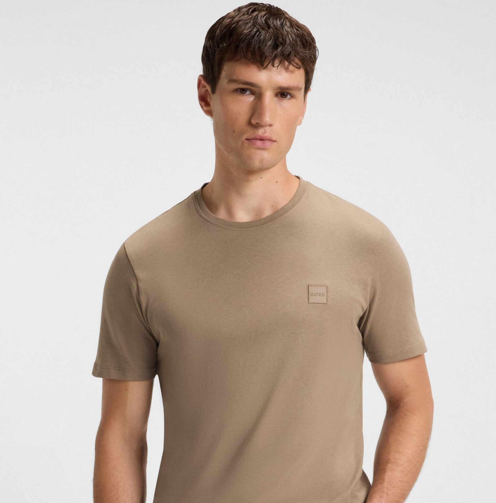 Experience everyday comfort with the logo patch t-shirt, designed in a regular fit for a relaxed yet flattering silhouette. Crafted from midweight jersey soft cotton, it offers breathable wear throughout the day. The classic crew neck and short sleeves make it a versatile staple, while the woven rubber logo patch adds a subtle touch of style. Perfect for casual outings or layering, this t-shirt combines quality and effortless cool in one essential piece.