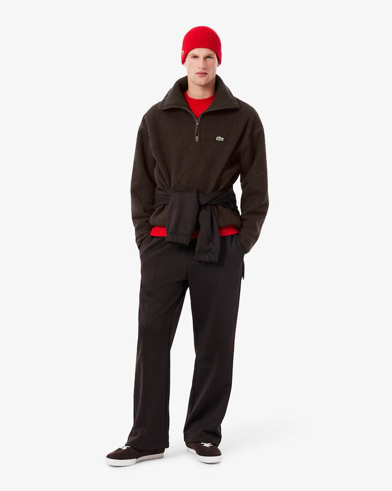 Embrace effortless comfort with this versatile polar fleece sweatshirt. Crafted from soft sherpa fabric with a cosy polar fleece backing, it delivers warmth without bulk. The relaxed silhouette features dropped shoulders for a contemporary look, while ribbed neck detailing ensures a secure fit. Practical side pockets keep essentials within reach, and elasticated cuffs and waistband provide a tailored finish. Topped with a distinctive embroidered crocodile emblem, this piece combines casual style with functional design—perfect for layering or wearing solo during cooler months.