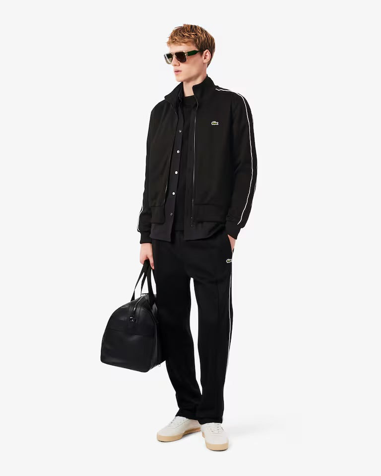 Crafted from abrasion-resistant interlock piqué, this paris piqué zip front track jacket offers durability and comfort for everyday wear. Its regular, slightly fitted cut ensures a flattering silhouette, while two zipped pockets provide secure storage for essentials. Contrast trim sleeves add a stylish edge, complemented by the iconic embroidered crocodile on the chest. Perfect for those who value both function and fashion.